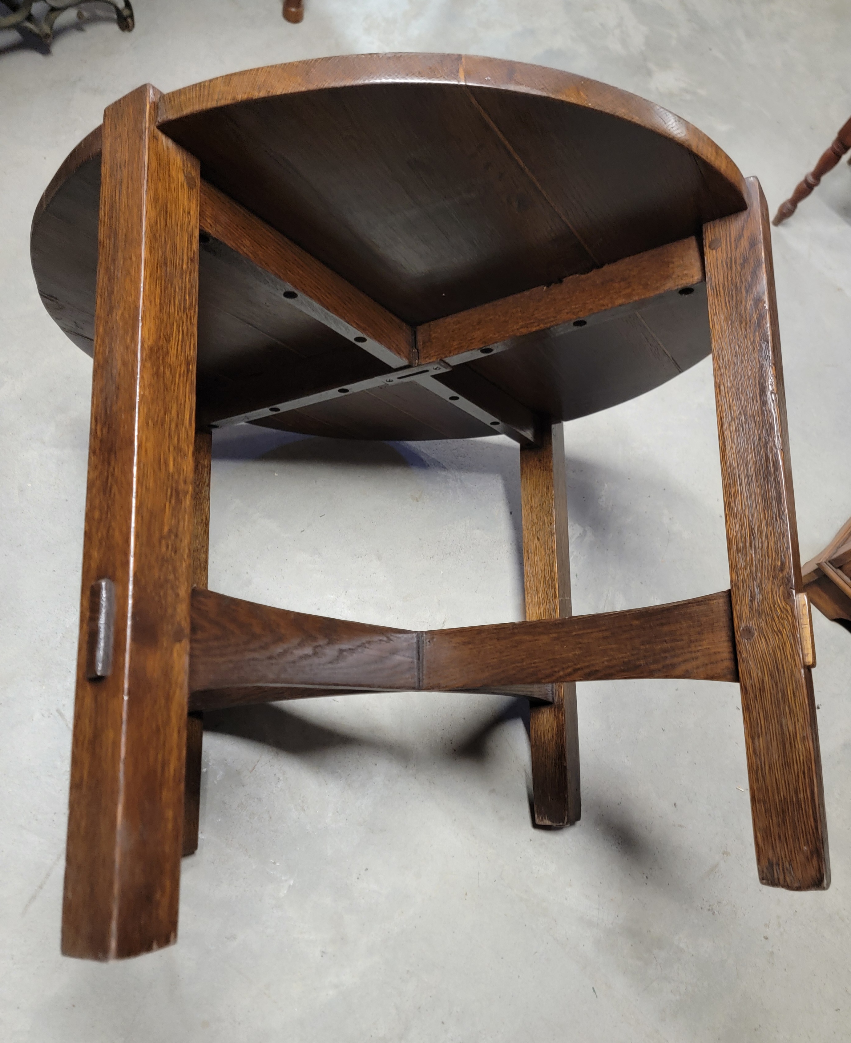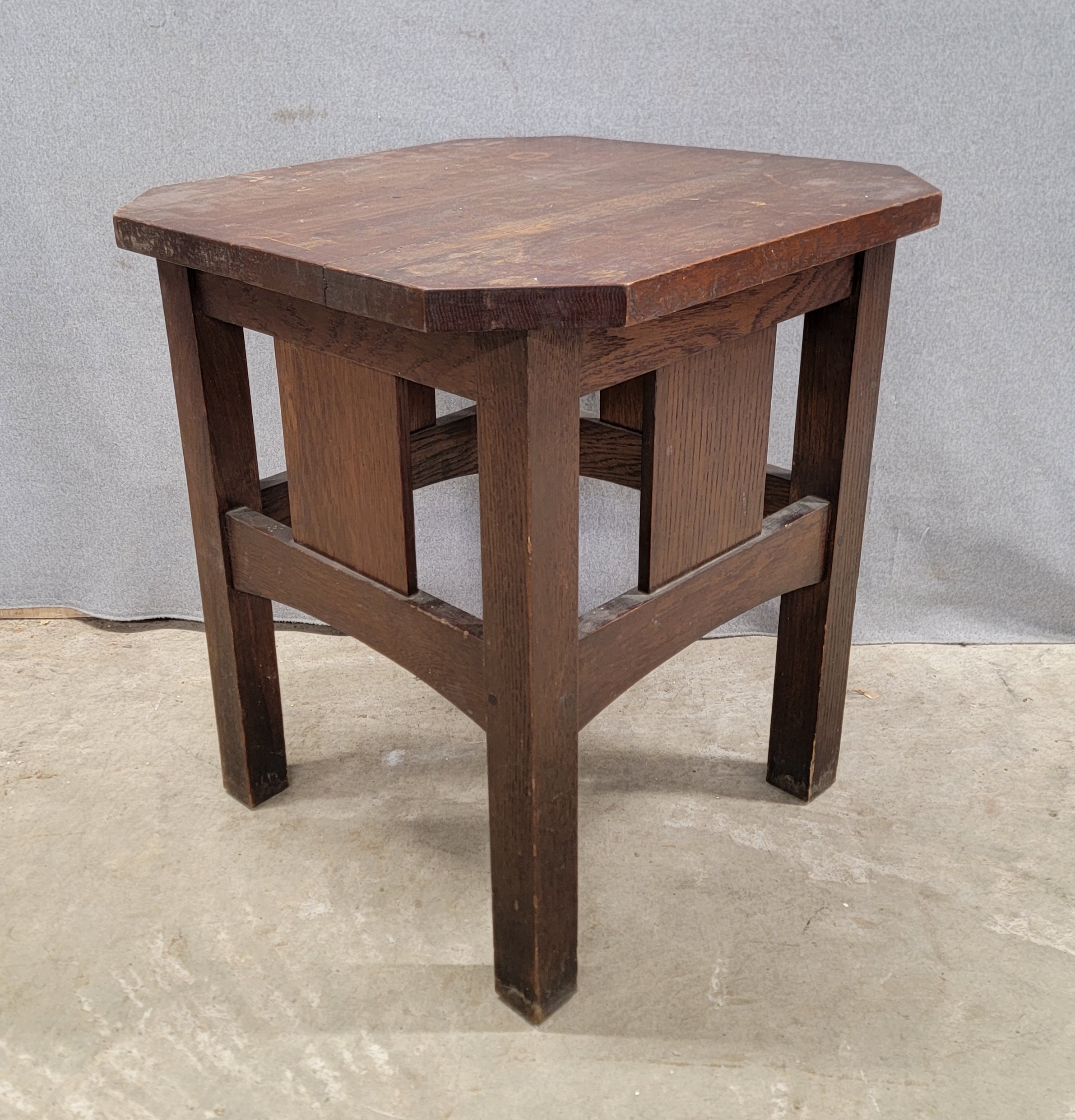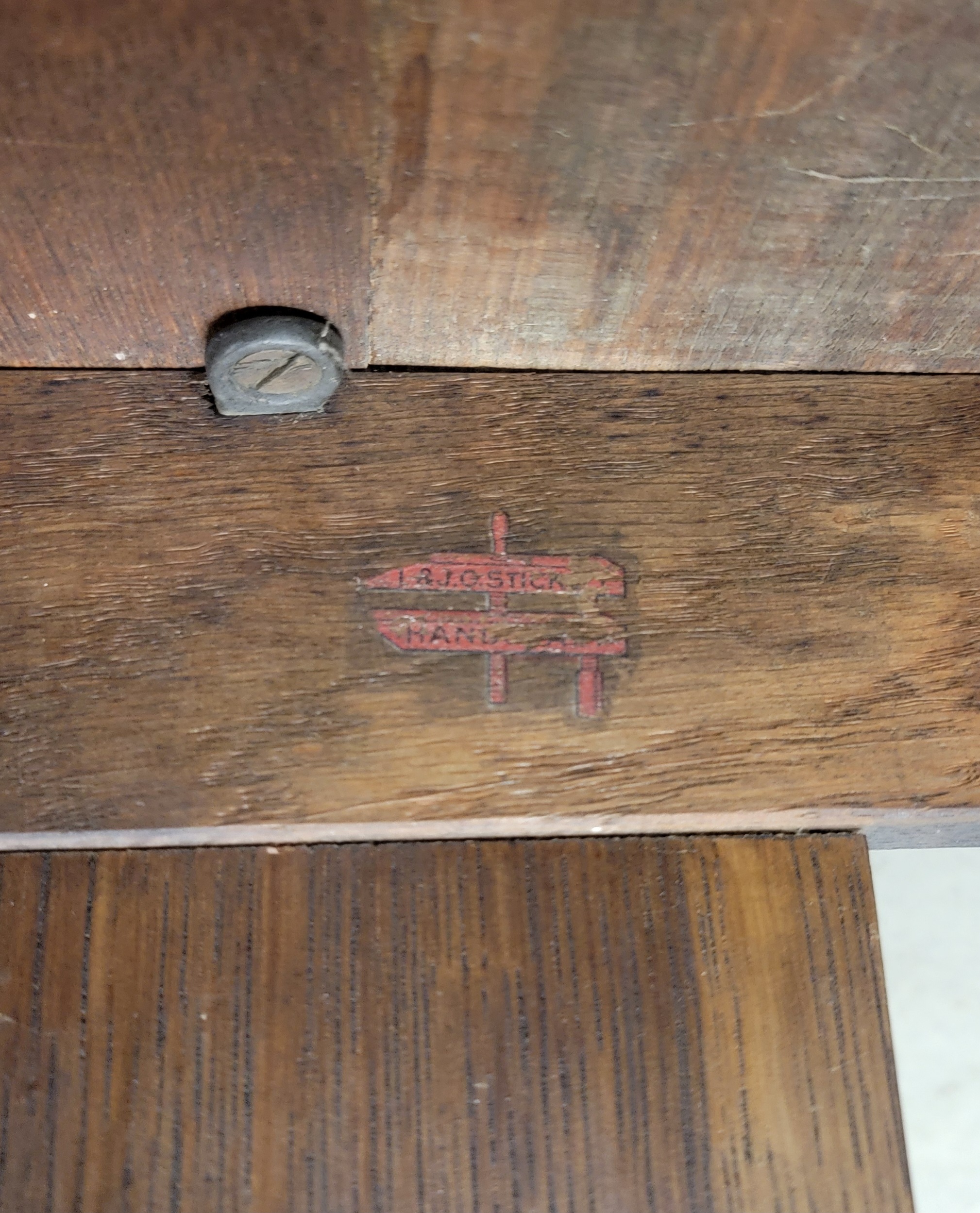 L&JG Stickley side stand with label, Gustav Stickley 36" lamp table (unmarked), Victorian walnut MT sideboard with mirror, "Iced Aire" oak ice chest, 5 drawer wardrobe w/ bonnet box, oak side by side with mirror, George C Flint MT stand, nice pine chest with 2 over 3 drawers, 5 drwr dresser, set of 4 small mid-century bent plywood chairs, contemporary stained glass table lamps, Péter hunt painted bed, Mission style oak bench, metal coffee table by Jorgensen (Denmark), a double glass door and an open front bookcase, metal Chevel mirror, stools, tables, stands, floor lamps, oak high chair a pine lift top bench, folding Adirondack patio chairs and a 3 ft. metal bar sleigh.
